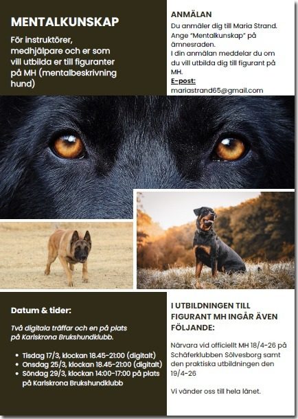 Här på hemsidan kan du hitta det mesta som rör brukshundar, men även kurser för alla raser, tävlingar och annat kul för hundar och ägare!